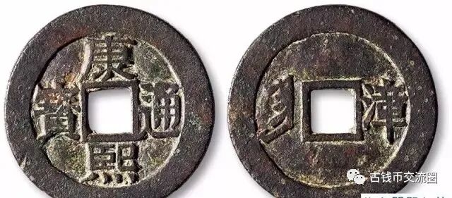 康熙通宝钱的背文除工部、户部所设的宝泉、宝源两局所铸均为满文外,其它外地各钱局鼓铸的通宝钱,其背文左为满文纪地,右为相应的汉字纪地。