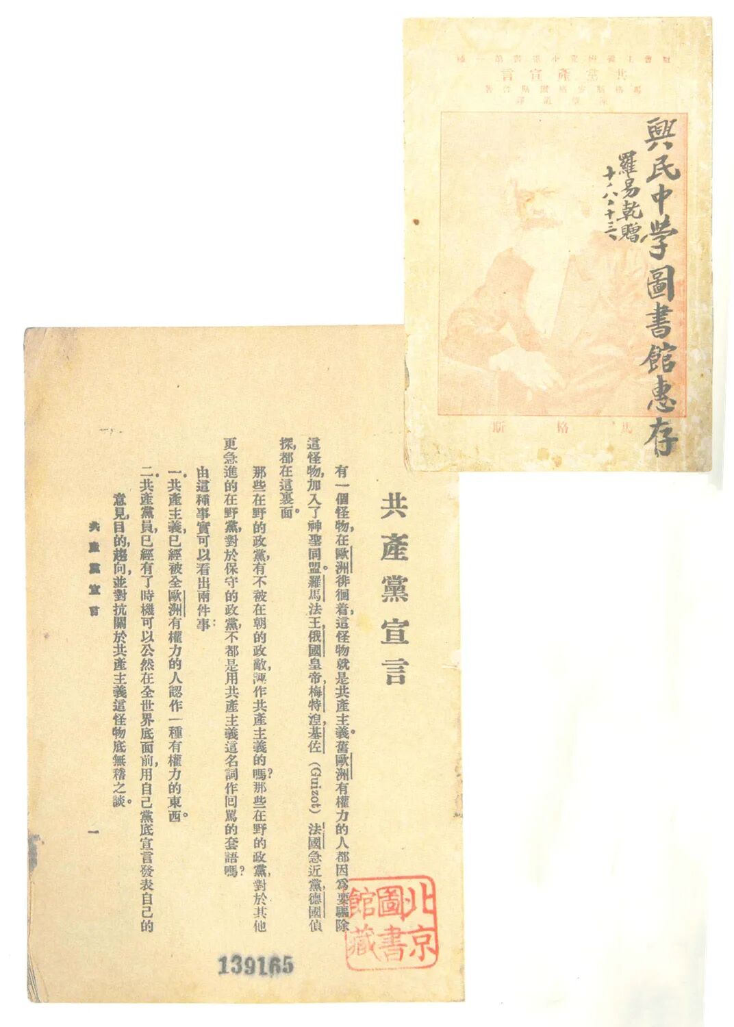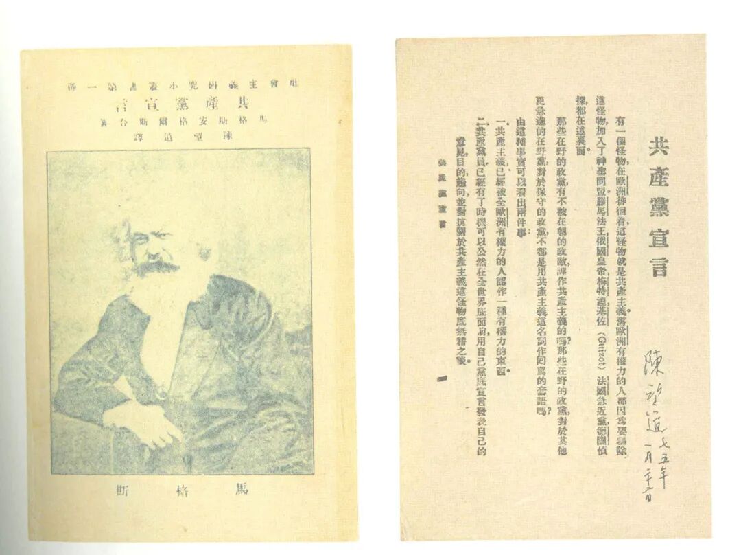 《共产党宣言》中文全译本第一版(右)、第二版