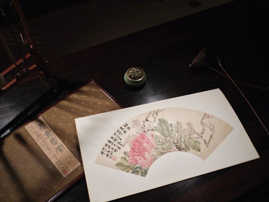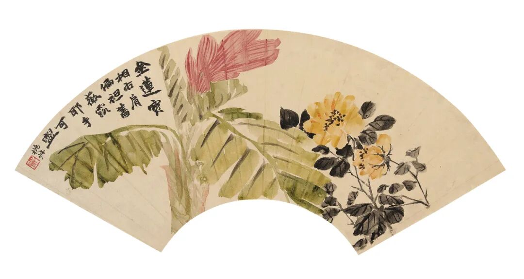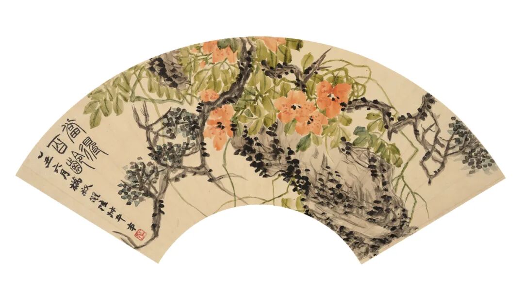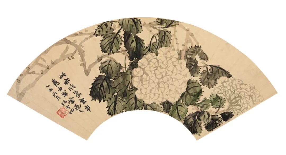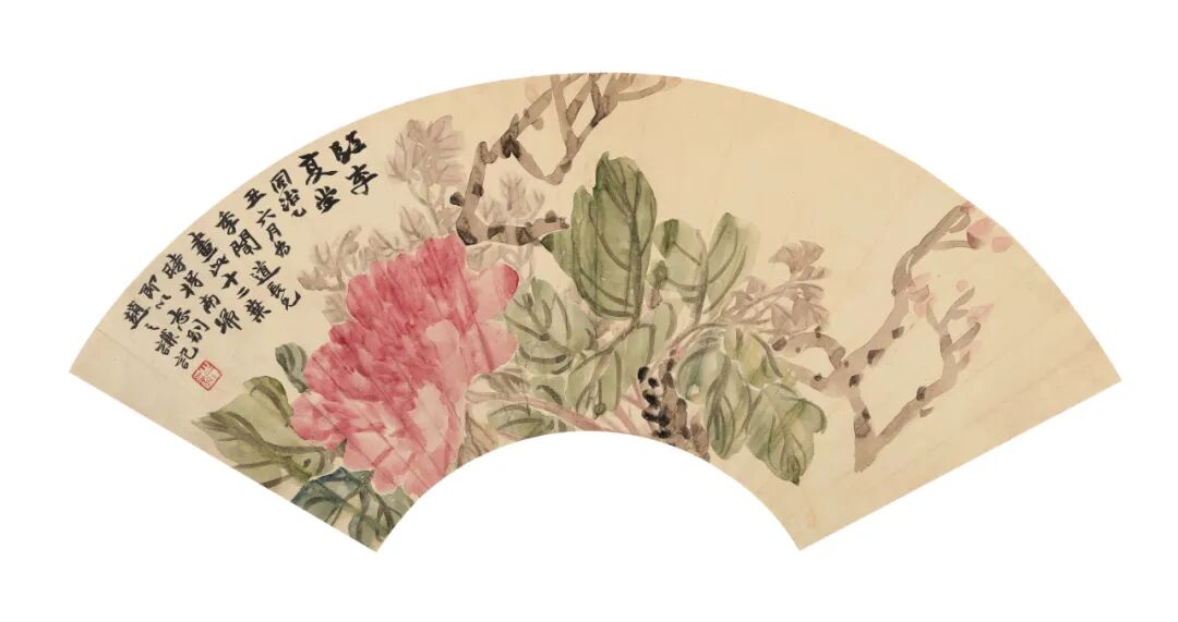 花鸟画发展到清代,出现恽南田(1633-1690)的没骨花卉和扬州画派援书入画的写意花鸟,分别引领了一时风流。到赵之谦(1829-1884)学画时,恽南田和扬州画派的余风犹在。有评者以为他“青年时习恽寿平画法”,其传世的早年画作也确实说明他对恽南田的没骨画法用功极深,勾线、设色和写生造型能力都比较扎实。但赵之谦花鸟画的历史性贡献,实际上在于他对恽南田的没骨画法和扬州画派的写意画法的结合——徐邦达以“用鲜艳的色彩来配合放逸的笔法,继承但又超出了陈淳、徐渭以来的粗笔花卉的传统”(徐邦达:《中国绘画史图录》)来评述赵之谦的绘画,实际上即是他以李鱓(1686-1762)的小写意手法运恽南田的设色造型,树立了一种有典型意义的花鸟画的新风范,进而在时势中成为从扬州画风向海派画风转变的桥梁和开创一代风气的大家。《<悲盦墨宝>花卉十二扇面》是赵之谦作于清代同治乙丑年(1865)六月的一组扇面精品。这一时间,赵之谦的书风仍处在转变的关键时期,但在画风上的李、恽结合已然初步定型。此册款题取法多人,有陆治(1496-1576)、徐渭(1521-1593)、石涛(1630-1724)、金农(1687-1764)、李鱓、钱载(1708-1793)等多人,所谓取法者,实际上都是画为某家所擅名的题材,譬如陆治的藤萝、徐渭的墨荷、石涛的水仙、金农的梅花和李鱓的绣球、芍药、菊花,以及钱载的兰石,具体的画法则全然出乎于己,李、恽技法的结合已经相当熟练。在赵之谦55年生命中,作此册时年35岁,精巧的技术和成熟稳定的个人风格让人叹服画家的早熟,其呈现的拙逸之美亦不亚于晚期,而灵秀之气尤胜之。上款祁之鑅(生卒年待考),字秀闻,清道光二十三年举人,曾官滦州知州。在清代同治戊辰七年(1868)七月,祁曾为赵之谦所撰《勇卢闲诘》卷的印行出版作序。《悲盦手札》中介绍赵之谦35岁在北京“新交祁季闻”(参见林进忠:《<悲盦手札>的相关研究》),与此作款文中所记时间是一致的,据册中《牡丹》一叶所记,是册为临别相赠之物。赵之谦36岁另有一册十二页《楷书自作诗》赠给祁氏,被研究者认为是赵之谦书风由颜体突然转入魏碑的里程碑作品。而此作的题款早具魏碑风貌,在笔力上虽不及晚年雄健灵动,但笔力面貌都已初具,此中也透露出邓石如书风对他的影响并非一朝一夕之功。![]()