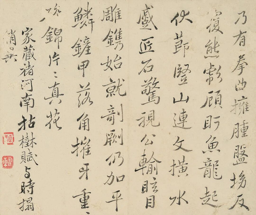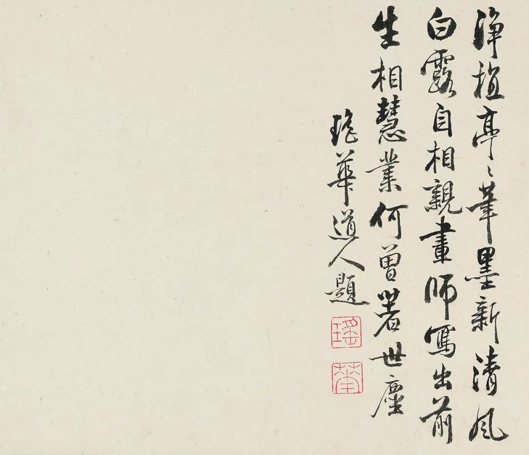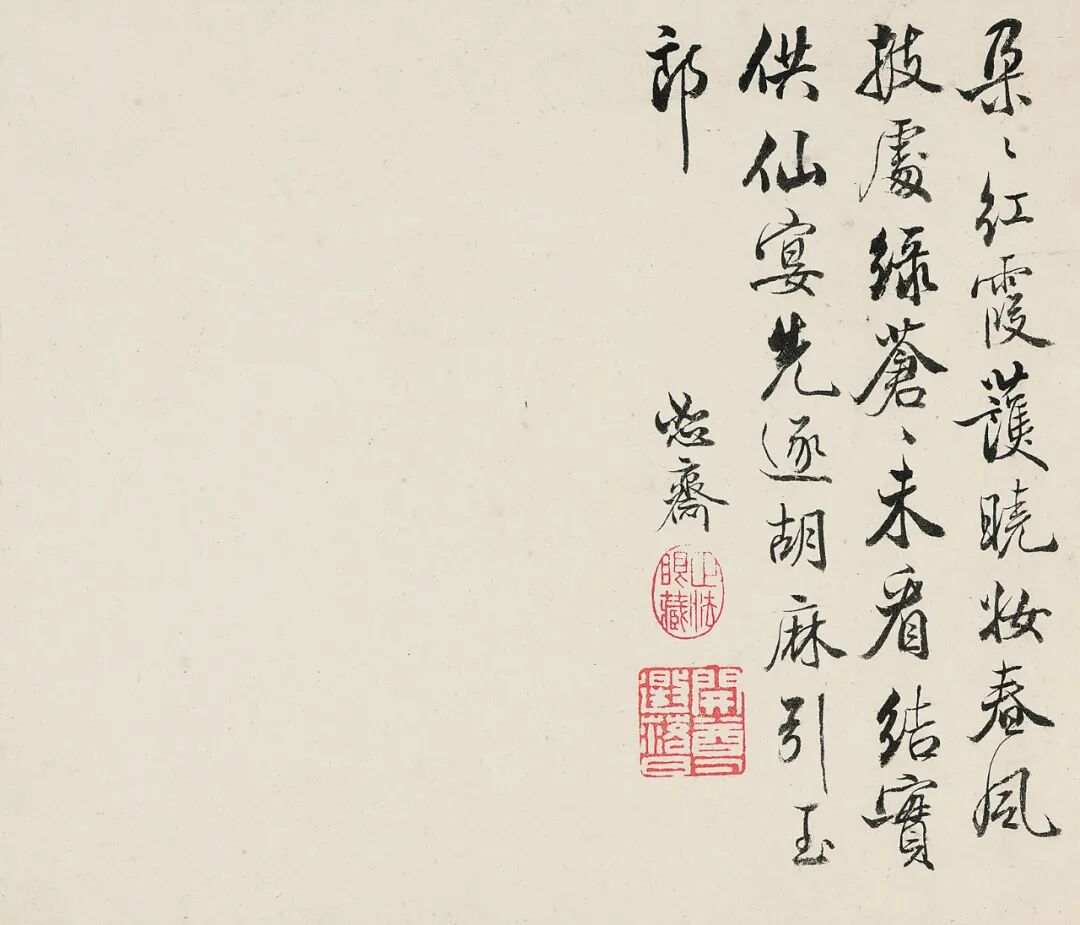3.弘旿对题。弘旿,字卓亭,号恕斋,一号醉迂,别号瑶华道人,又号一如居士。清宗室。封固山贝子、奉恩将军。能诗、工书、画,以三绝称。书兼四体,画备诸格,山水得董、黄妙谛,花木具陈、陆之秘传,治石印不失元、明人矩矱。