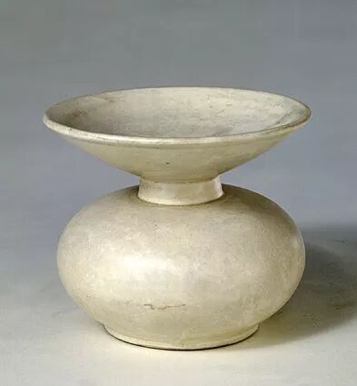 此件奓斗胎质洁白细腻,釉色莹润雪白,造型规整大方,在唐代白瓷中属上乘之作。