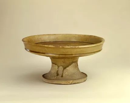 淮南窑黄釉高足盘,隋,高12.5cm,口径27.5cm,足径14.5cm。