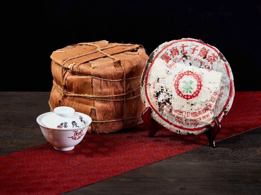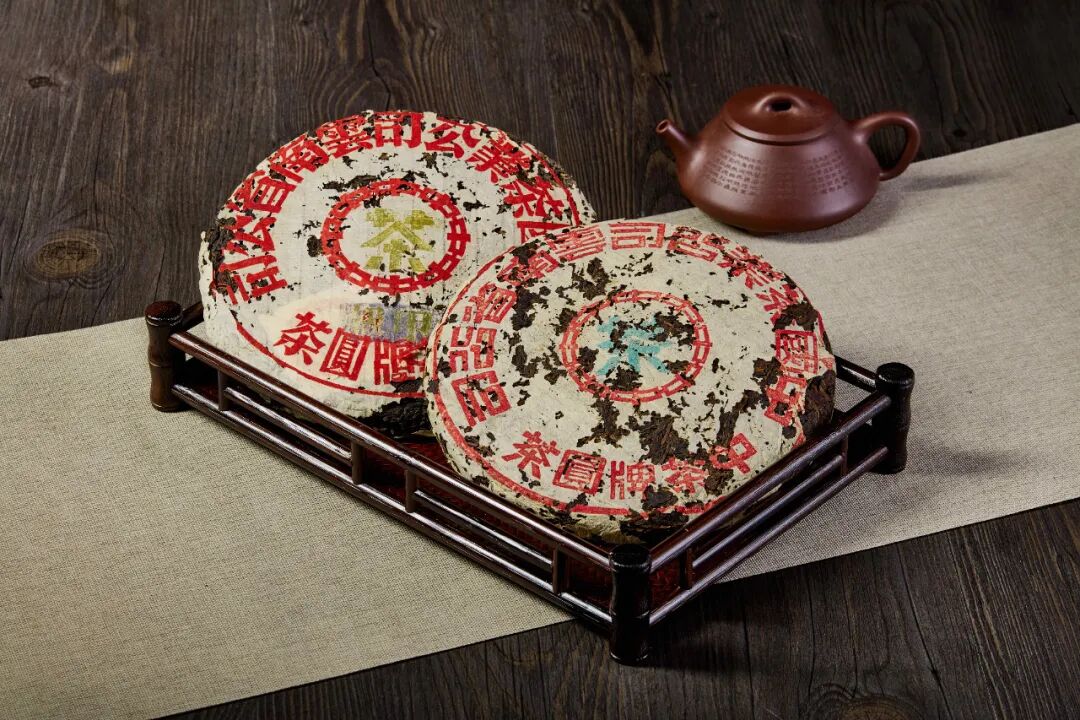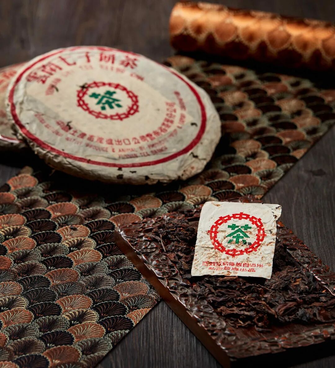 这是国营勐海茶厂改为「有限责任公司」后,首批以「大益」商标生产的青饼。饼型工整,边身圆浑,茶条幼结,经过20余年的自然仓存放,正步入陈期转化阶段,是中生代茶品的热门之选,存饮皆宜。首批「紫大益」制作认真,以嫩叶茶青拼配,萌芽特重,有着勐海7532青饼的影子。其香气清正,气韵高扬,茶汤澄明且具穿透力,口感绵稠,爽朗宜人,是市场追捧的明星茶品,优良的茶质也成为业界推崇的经典普洱茶代表之一,茶人竞相收藏的珍品。