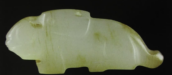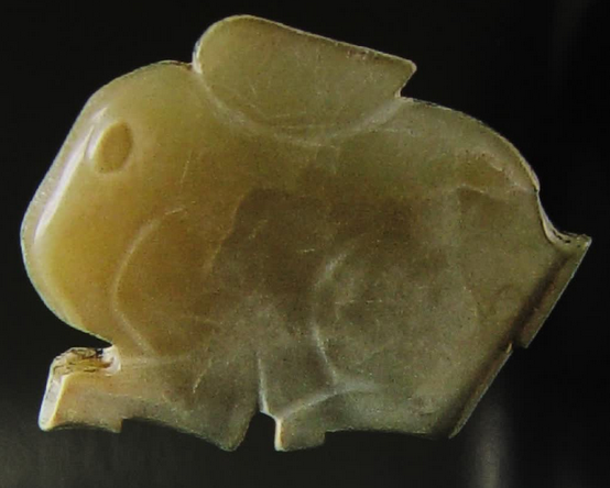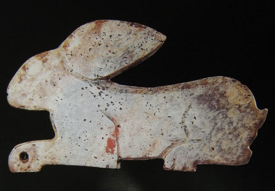 殷商时期,青铜工具的使用使得琢玉技术得到极大提高,因此人们能够雕出薄而均匀的玉饰,这一时期的玉兔以简洁明快的片雕状形象出现,在中原地区、山东地区、山西地区等均有发现。