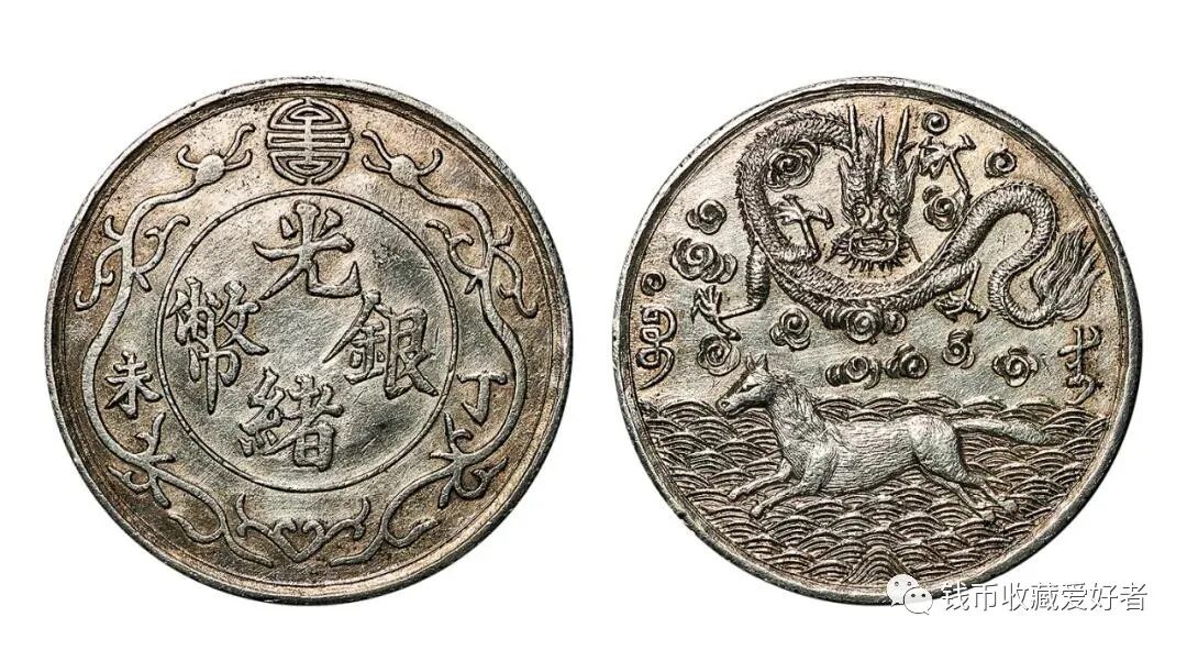 丁未光绪龙马臆造币。参考价RMB1000-2000元,中国嘉德2020年春季拍卖会成交价RMB9775元。丁未光绪银币背海马飞龙,臆造银币,保存完好,近未使用品。