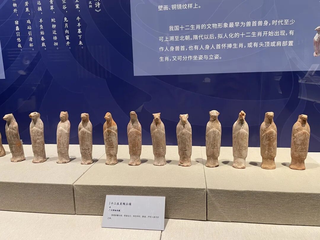 生肖作为辟邪的神兽,北朝至隋唐以来大量出现在墓葬文物中。十二生肖俑形象多样,在墓中一般于东、南、西、北四方各放三个,或置于小龛中,唐代高等级墓葬中尤为完备。南宋以后,作为随葬品的十二生肖俑逐渐消失。此外,十二生肖的形象也多见于隋唐时期的墓志石刻、浮雕、壁画、铜镜纹样上。