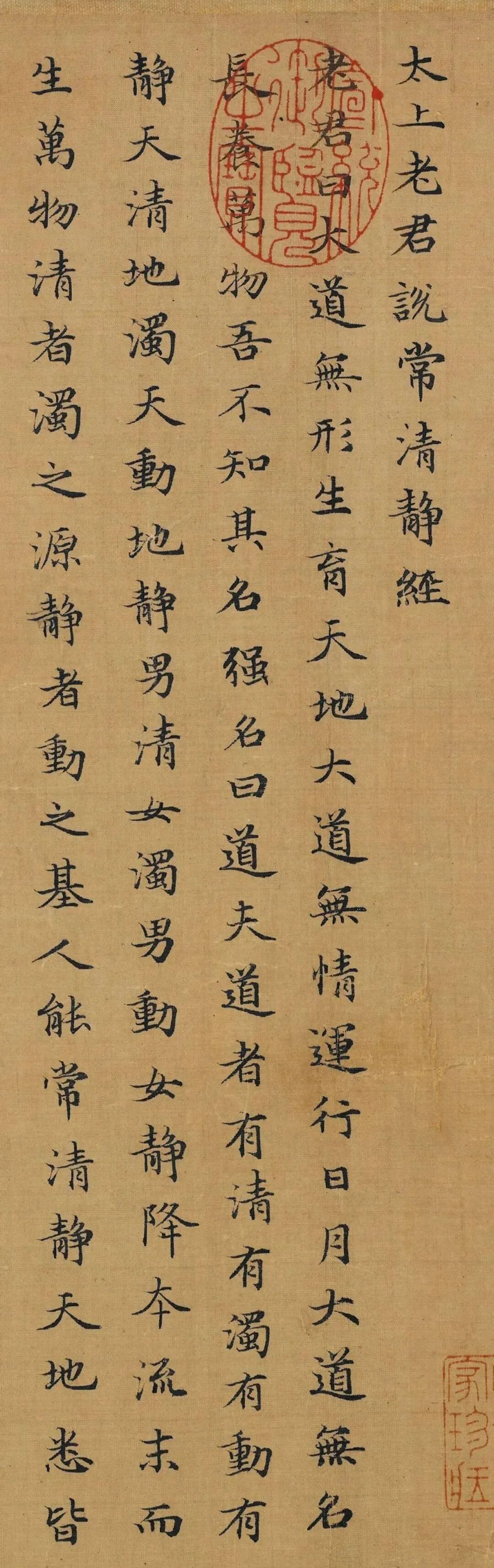 赵孟頫太上老君说常清净经小楷墨迹本,绢本29×58厘米,美国佛利尔美术馆藏。