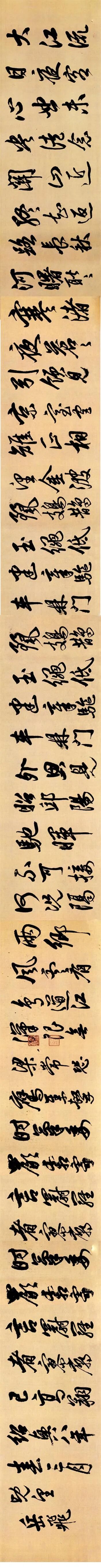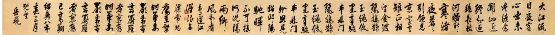 岳飞《书谢眺诗》释文:大江流日夜,客心悲未央。徒念关山近,终知反路长。秋河曙耿耿,寒渚夜苍苍。引领见京室,宫雉正相望。金波丽鳷鹊,玉绳低建章。驱车鼎门外,思见昭丘阳。驰晖不可接,何况隔丽乡。风云有鸟路,江汉限无梁。常恐鹰隼击,时菊委严霜。寄言罻罗者,寥廓已高翔。绍兴八年春三月既望岳飞。