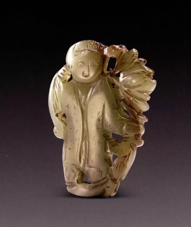 玉雕童子是宋代崇尚自然,追求“不事雕琢、天然成趣”的审美意境的又一种题材。两宋时期,玉雕童子非常盛行,造型丰富,生动写实,他们有的持莲,有的嬉戏,天真烂漫,生动活泼,其形态显示出民间清新的生活气息和独特的时代风貌,充满了世俗生活的欢乐情趣。