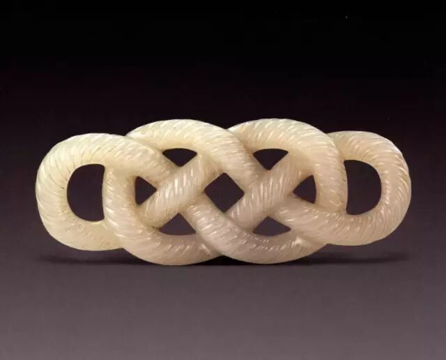 玉质洁白,温润。圆雕两个绳结盘叠,其上刻阴线细绳纹,工艺细腻传神,具有典型宋代风格,造型十分别致,此类玉器存世较少见。