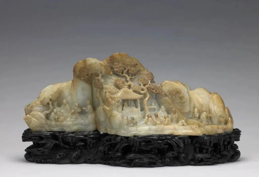 玉山,顾名思义,即用玉石采取圆雕技法,雕刻出的以山峦为主体造型的陈设观赏品。玉山又称“山子”,本于古代园林内的假山。乾隆时期,随着玉料来源的充足和雕刻技术的娴熟,制玉工艺空前繁荣,出现了许多大型圆雕作品。海内外著名的玉山,有北京故宫博物院珍藏的“大禹治水图玉山”和“会昌九老图玉山”等。他们均形体硕大,纹饰繁复,内涵丰富,是具有很高艺术价值的珍品。