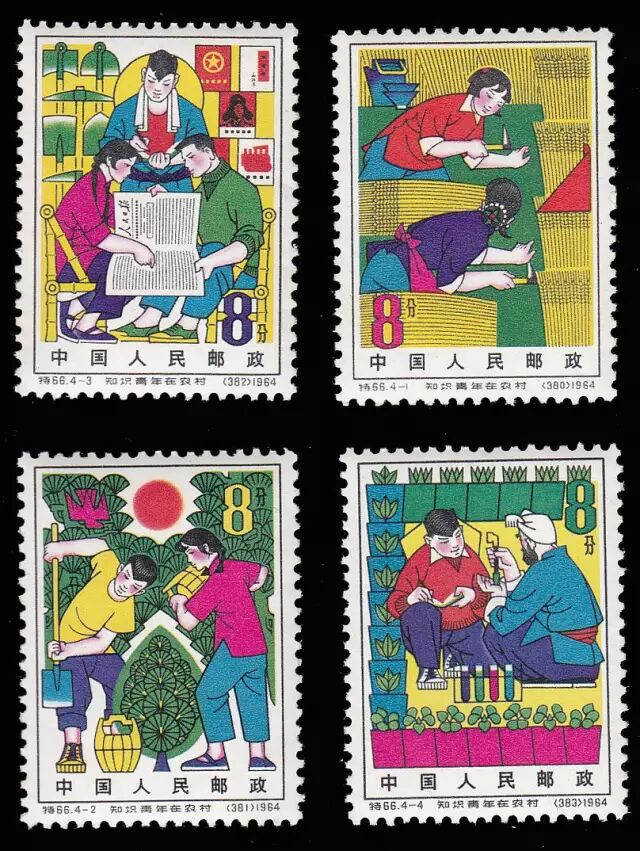 以雷锋形象而言,首次登上“国家名片”是在1964年9月26日发行的特66《知识青年在农村》邮票中。在这4枚1套的邮票中的第3枚“学习”邮票的背景图上,有一本《雷锋的故事》书,书的封面就是雷锋的木刻头像。