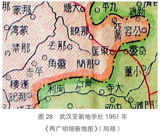 图 13 1951 年武汉亚新地学社《两广明细新地图》( 局部 )