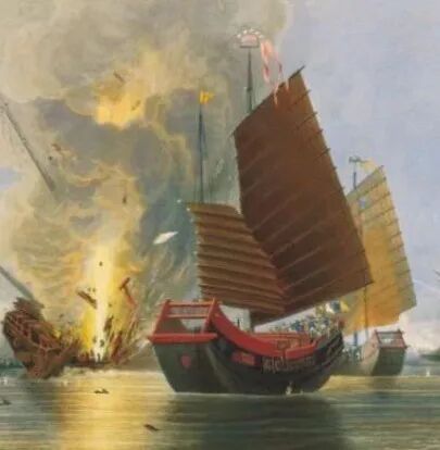 图8但是,它同样没明确说明这幅画到底是展现 1841 年 1 月 7 日的真实场景速写,还是只是作者后期根据战况或者记忆描述得来,这事关其是否属于一手史料及史料价值。很遗憾,笔者尚未查证到可靠的信息,但愈发对画面是否真实场景的速写产生疑虑。如果它不是真实场景的速写——至少目前无法证明,那么:“这种可视叙事史的套式变化使某类信息更容易传达,但必须以牺牲其他类型的信息为代价。画面上出现的是被认为发生过的事情,而不是实际发生的事情。绝不能将图像等同于他们试图描述的事实。”([英]彼得伯克(Peter Burke)著 杨豫译《图像证史(第二版)》,北京,北京大学出版社,2020 年 7月,第 229 页。)这种战争画表现出来的唯实主义,带有一定的欺骗性,实际上却在刻意掩盖作者希望通过一个发生过的事情,表达自己想法或者宣传某些思想的目的,其把广东水师的战船爆炸效果突出、中国水勇四散逃命的狼狈、复仇女神号突袭效果超群、广东水师很多船只帆还没升起的仓皇应对等都展现得淋漓尽致。换句话说,作者通过这样的一种作画风格,夸张了复仇女神号武器的威力,画面带有很强烈的个人情感。综合分析,在笔者目前暂未查证到这幅图像完整信息的前提下,其本身蕴含的真实性,尚且不如伦敦新闻画报可信,其史料价值有待商榷。当然,这也有助于我们看到作者在当时背景下作画的深层目。所以分析一幅画作时一定不能放过其时代背景甚至是画作的结构都可能传送着某种信息。如果我们忽视了图像、艺术家、图像的用途和人们看待图像的态度在不同历史时期不同视角下的千差万别,就会面临风险。由此回到插图中的初始问题:“图1中左侧和中间的船是广东水师吗?”学生曾回答我:“肯定是中国的,因为落后有帆,而且一看就是木头的”。学生的回答稚嫩有趣但是却值得进一步思考。工业革命下的英国“船坚炮利”都是铁甲舰?显然复仇女神号只是个例,且是铁壳木船。英军所用的军舰也是风帆战舰为主。只不过经过大航海时代的一系列海战的洗礼,英国的造船技术已经远超中国。![]()