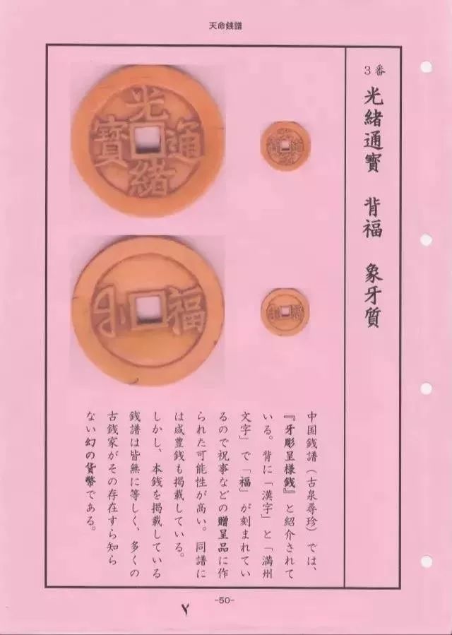 日本 《天命泉谱》所载的光绪通宝宝福象牙质雕样