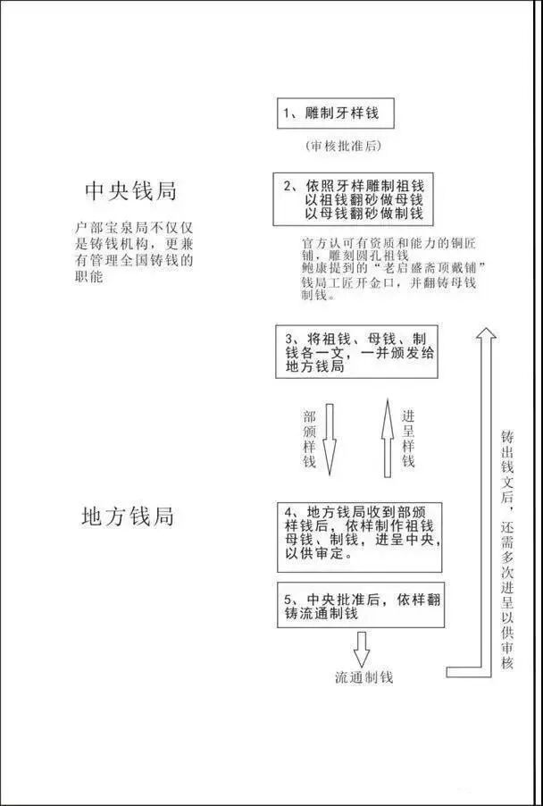 清代的进呈雕样有实物流传,考证也有据可查。鲍康的《大泉图录》记载,每次铸造新钱,先以象牙雕刻成钱样,供钱法堂审核。核准通过后,再依照此形制雕刻铜质雕母,雕母翻砂制成母钱,最后由母钱翻铸流通子钱。由此可见这种进呈性质的样钱,是铸钱的源头,有非常重要的研究价值。
