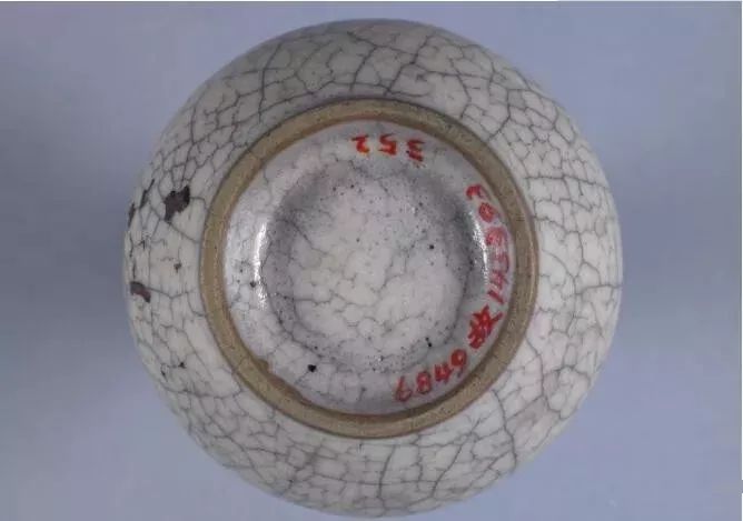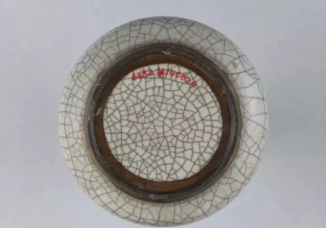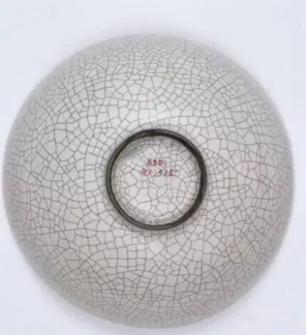 釉面密布交织如网的“金丝铁线”开片纹,使素净的釉面富于韵律美。外底有6个圆形支钉痕。