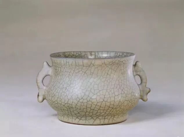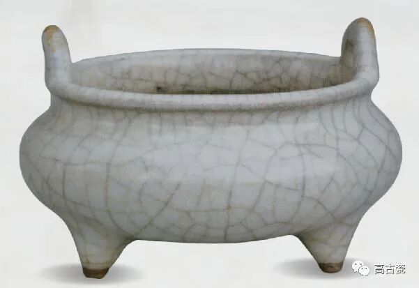 鱼耳炉因可用来焚香且炉身两侧置鱼形耳而得名,是宋代哥窑瓷器中的名品。元、明时虽有仿品传世,但均貌似神离,无法企及原作之风韵。