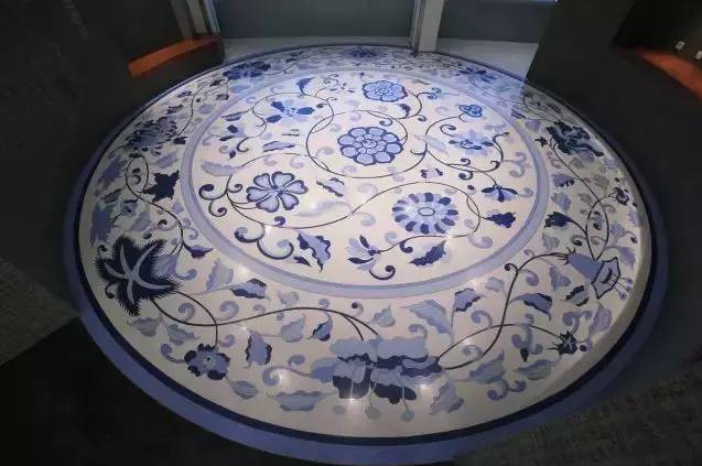 这是全中国最大的青花水磨地面,嵌入人工拗出的铜丝,面积多达60平米!