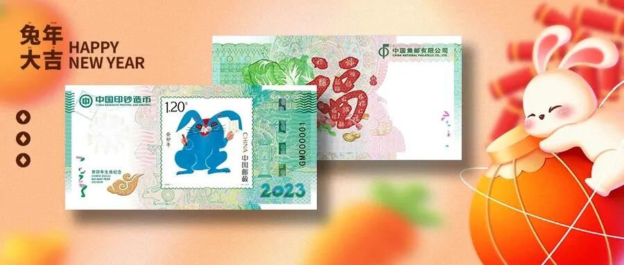 这张纪念券正面主景图案,源自中国邮政在1月5日发行兔年生肖邮票的《癸卯寄福》。