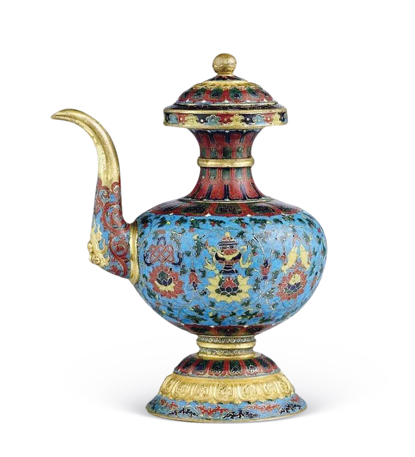 明宣德 掐丝珐琅莲托八宝纹贲巴壶
