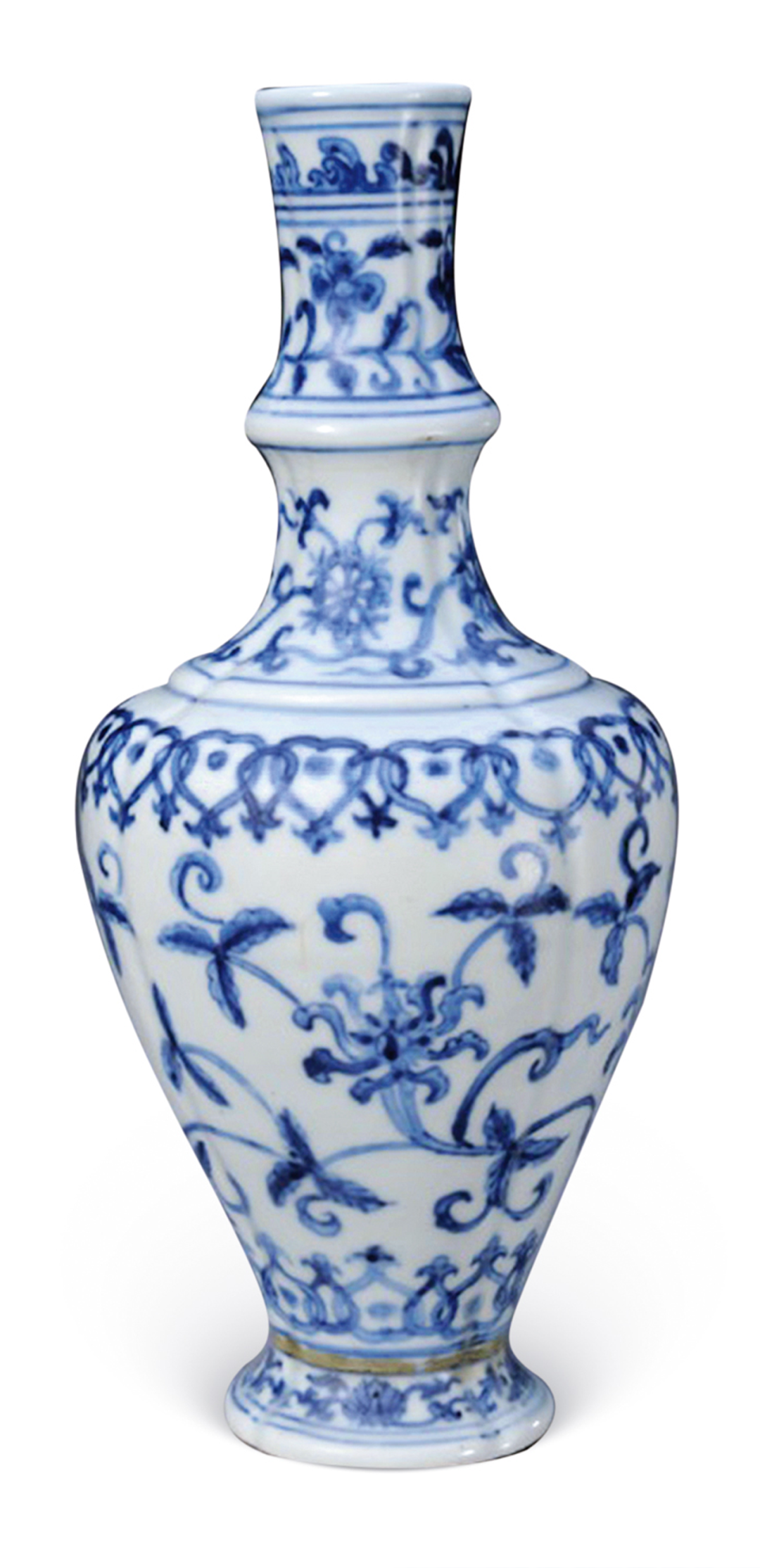 明正德 青花缠枝花卉纹瓜棱长颈瓶