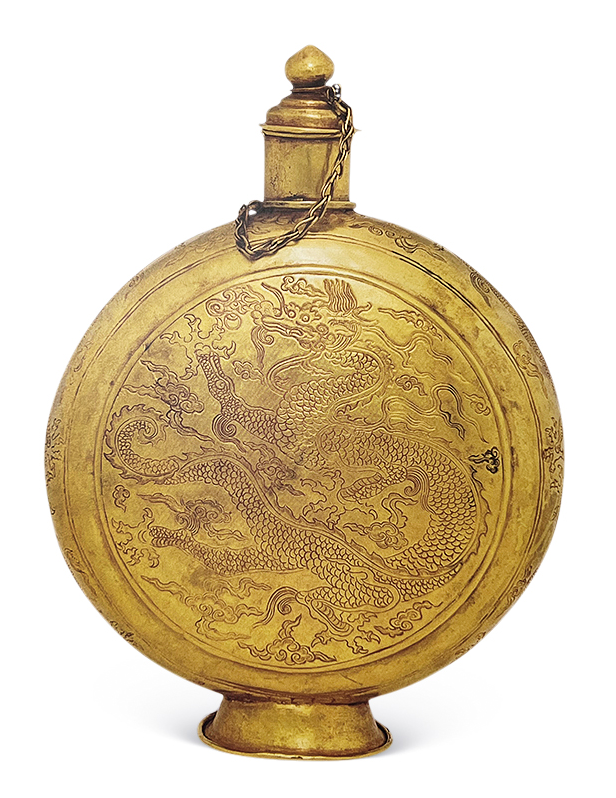 在具体实施过程中,朝贡与回赐是朝廷与西藏联络的主要纽带与形式:西藏各派进京朝贡,能获得丰厚的赏赐,也在寻求皇帝诰封,以证其权力的合法性;明廷将诰封视为中央政府享有西藏主权的标志,并以三倍于贡物价值的丰厚回赐,拉拢藏族上层人士。有学者认为,明廷对番王慷慨的封官、赏赐,希望借其力量守边护方,所谓“广宣佛教,化导群迷,俾尔一方之人,咸起为善之心,永享太平之福”。本品即为赏赉藏地礼佛用器之佳例。
