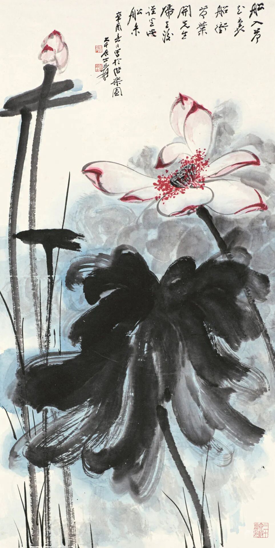 Lot 21020 张大千(1899-1983) 红荷图拍品估价:80,000 - 120,000 人民币