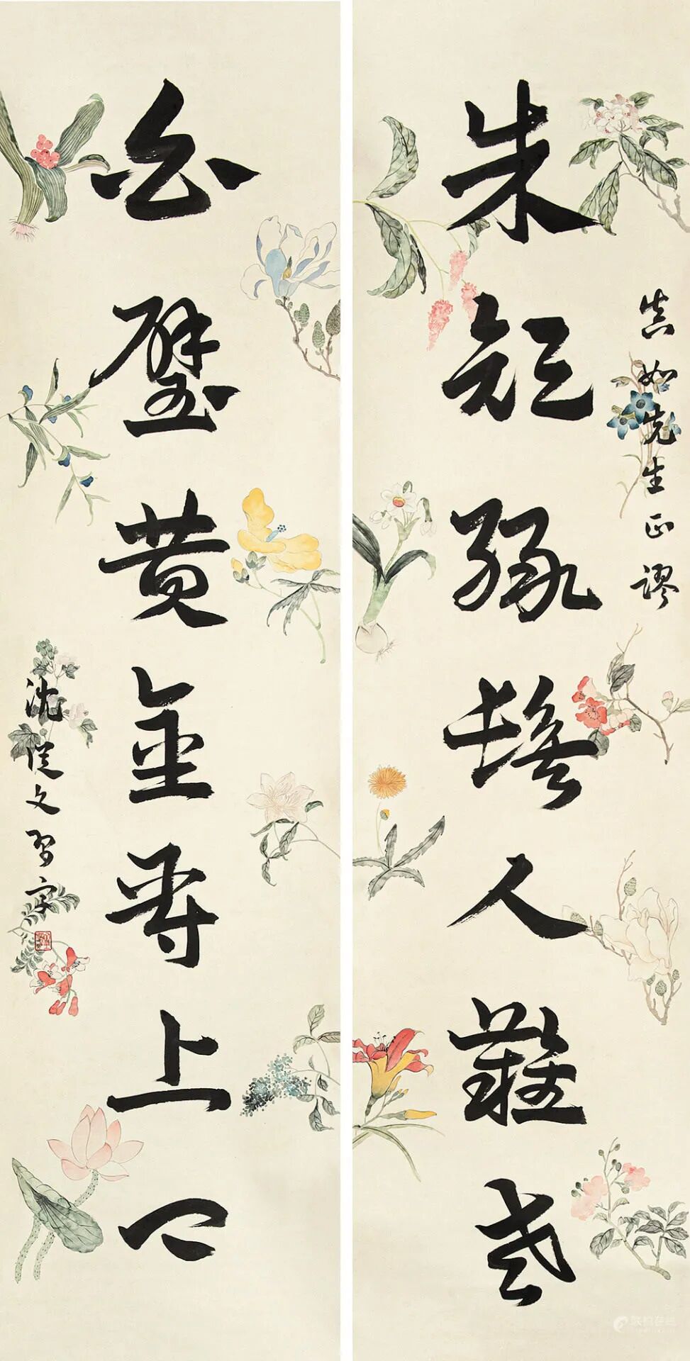 Lot 21076 沈从文(1902-1988) 行书七言联说明:上款人“真如”应为翁真如,翁真如(1946-),教授,澳大利亚太平绅士,广东梅州人,香港岭南画派赵少昂教授入室弟子,澳洲美协主席,澳洲书协主席,七十年代移居澳大利亚。中国多所大学客座教授;中国美术学院国际美术教育交流委员,广州艺博院赵少昂专资理事,以及番禺博物馆,李可染艺术馆,中国长城书画院等名誉顾问。
