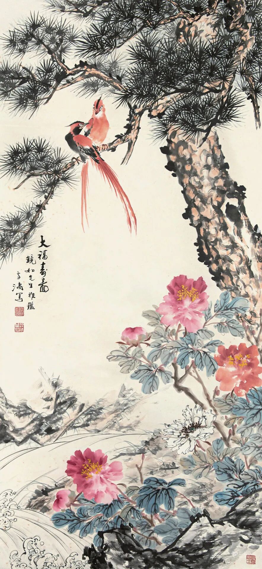 Lot 21011 王雪涛(1903-1982) 大福寿2.上款人“镜如”为侯镜如,侯镜如(1902年-1994年10月25日 ),号心朗,河南永城人,1955年加入民革,著名的政治活动家、爱国将领、中国国民党革命委员会杰出的领导人。历任民革第三届中央委员,第四、五届中央常委,第六、七届中央副主席。中华人民共和国成立后,任国务院参事,中华人民共和国国防委员会委员,政协北京市委员会副主席等职。1989年3月至1994年任政协全国委员会副主席。