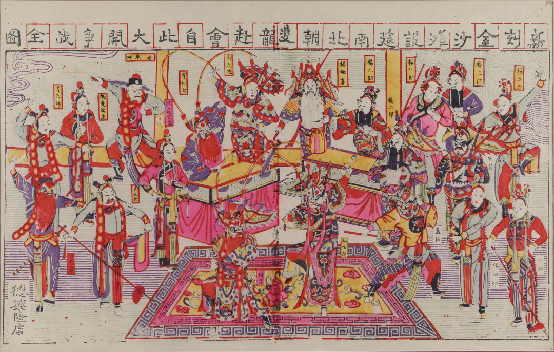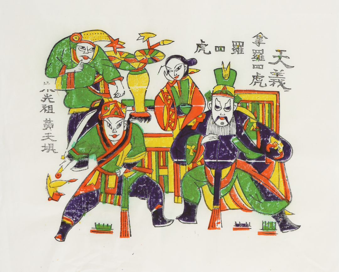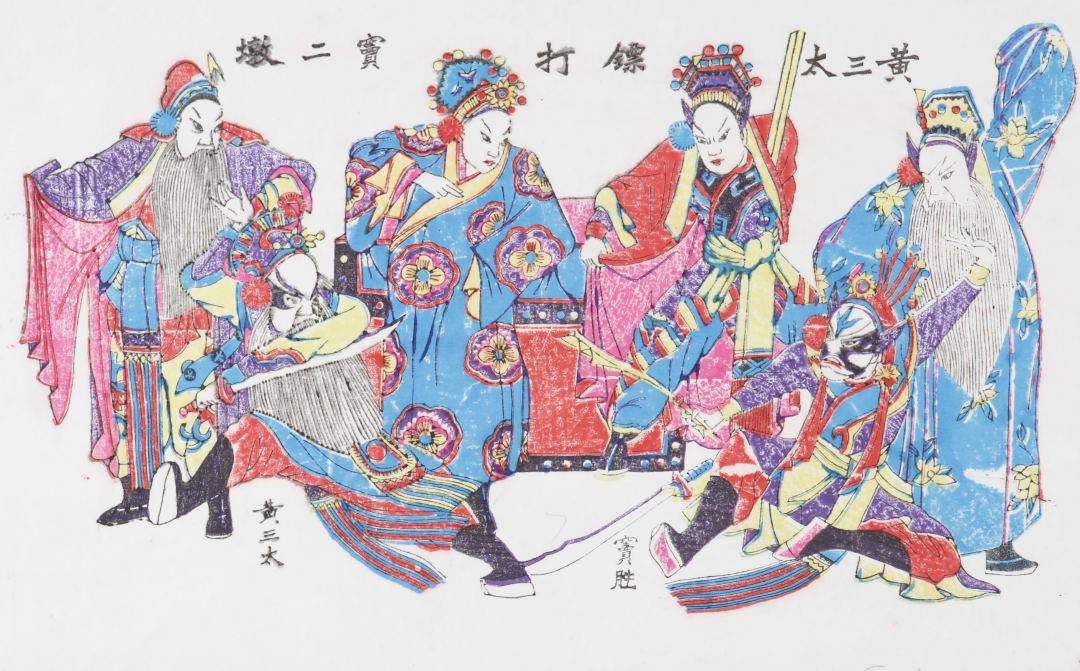 “笙歌散后声情在,木版丹青觅音容”,戏出年画是戏曲艺术和版画艺术的结晶。天津杨柳青、苏州桃花坞、潍坊杨家埠、开封朱仙镇、河北武强等著名年画产地均印制了大量戏出题材的年画,在民间大受欢迎。寻常百姓既可以从戏出年画中品味戏曲的精妙,也可通过戏曲故事学习知识。
