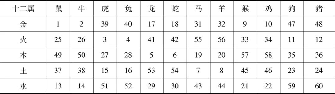 表1 六十甲子在五行中的划分