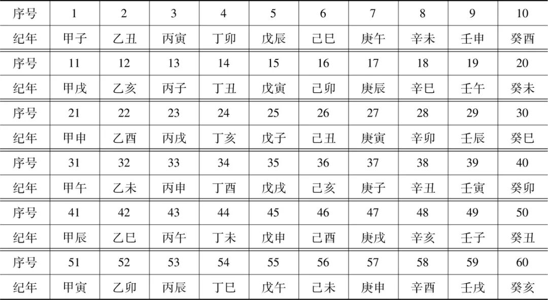 表2 六十干支在一个甲子中的排序