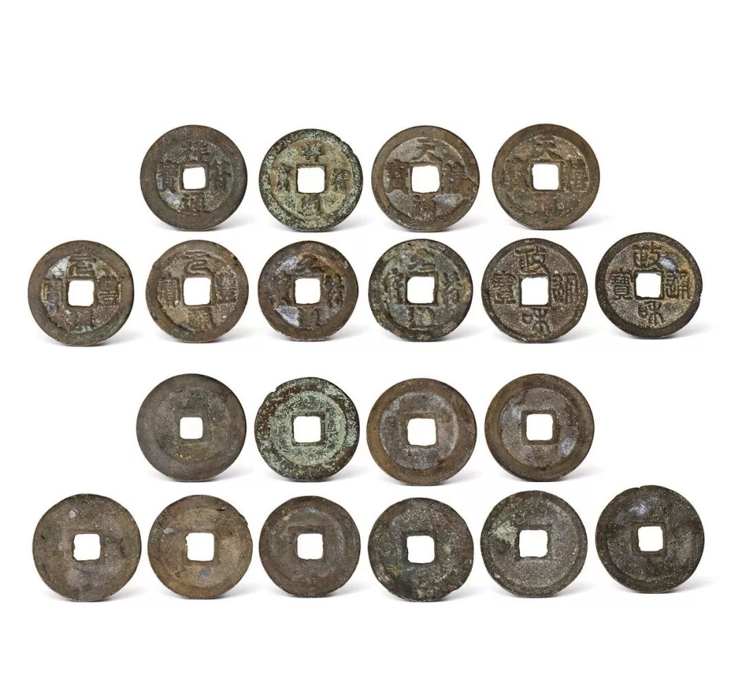 4.铁钱:从汉代到清代都有铁钱,但作为常制,与政权相始终的只有宋代。五代十国时期,由于战乱,地方政权铸铅铁钱以敛财。宋代因循未改,并作为一种制度固定下来。宋代铁钱铸造时间长,行用广。有铁钱区,有铜铁并用区。
