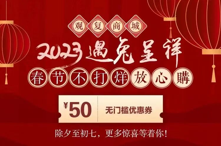 2023春节不打烊!除夕至初七,观复商城无门槛优惠券限时发放中,更多惊喜详见店内活动。