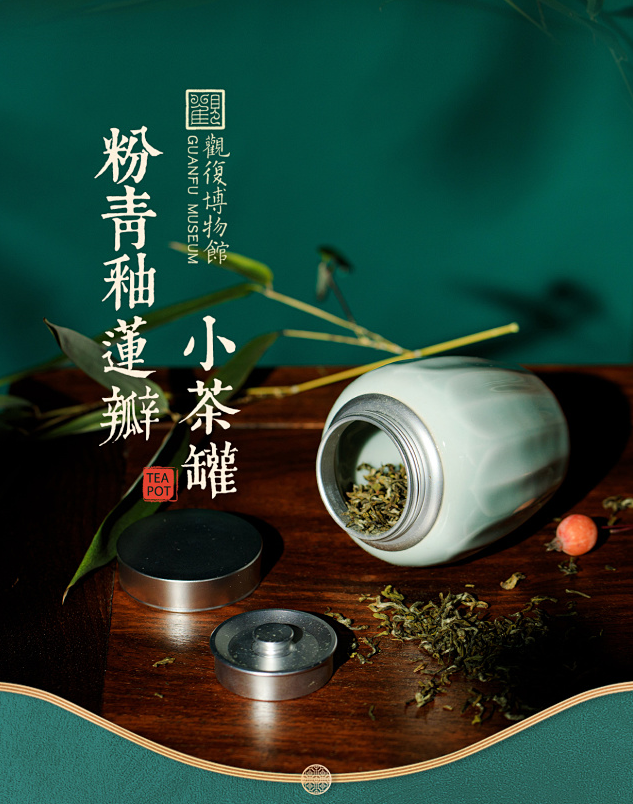 观复博物馆以“荷”为灵感,推出了一款玲珑小巧的「粉青釉莲瓣小茶罐」