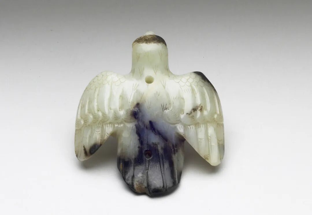 战国中期,玉鸟佩,长8.6 公分、厚0.6 公分。