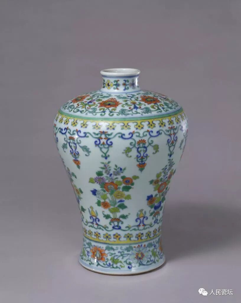 斗彩缠枝花纹梅瓶,清雍正,高26.3cm,口径5.5cm,足径11.9cm。