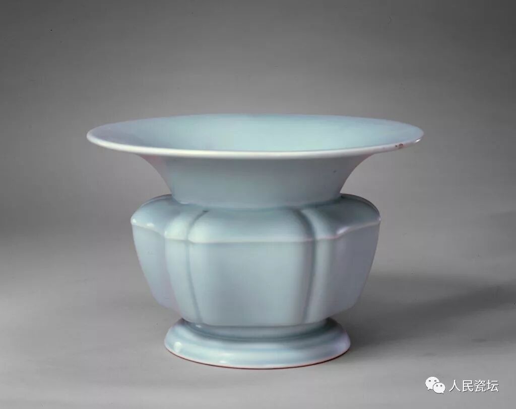 粉青釉尊,清雍正,高13.3cm,口径21.2cm,足径11.6cm。