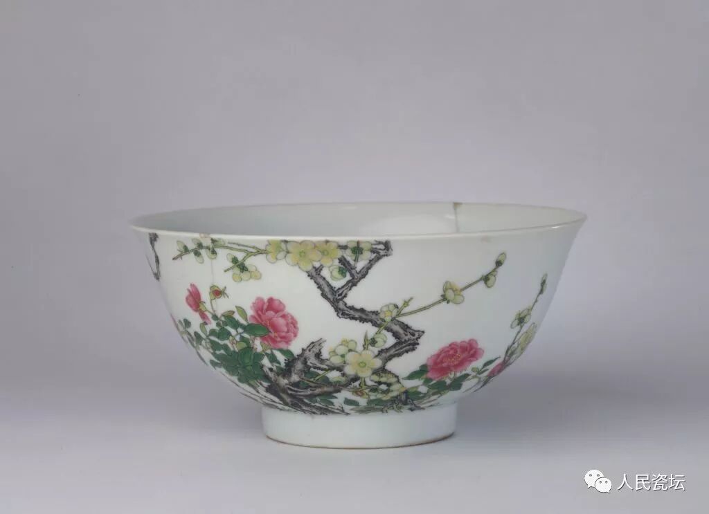 珐琅彩梅花牡丹纹碗,清雍正,高6.9cm,口径14.6cm,足径6cm。