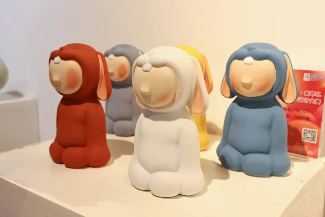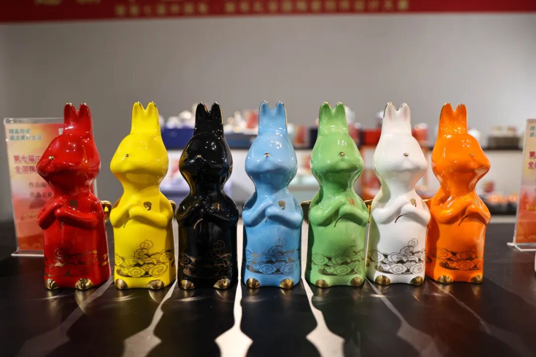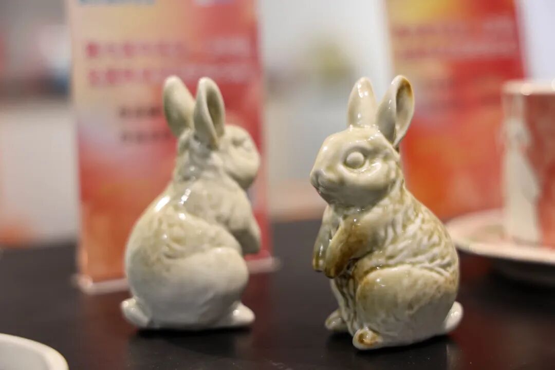 来自北京陶瓷艺术馆的“小喜兔”无疑是本次展会中一抹靓丽的风景线,小喜兔产自瓷区德化,运用高温颜色釉工艺,生动形象地还原了奥运福娃设计者吴冠英教授的设计,是当之无愧的兔年精品文创。