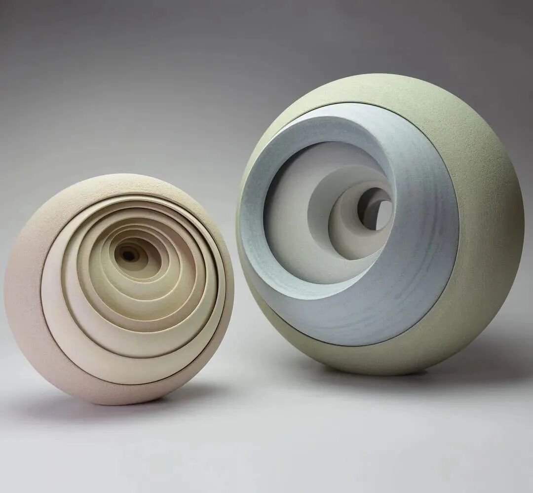 Matthew Chambers 的这些陶瓷作品并没有实际的功用,将抽象复杂的立体形态与平常的陶艺相结合。他在做了7年的陶瓷工之后到RCA学习深造,专注于制作的过程,设计是在过程中完成的,先完成一个个部件,然后再组合到一起。使用瓷土的原色,让其有自然的如同石头一样的质感。