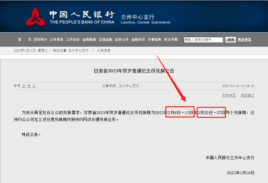 根据央行公告,甘肃地区年后将分两次进行兑换,时间分别是2月6日——2月13日和2月20日——2月27日。