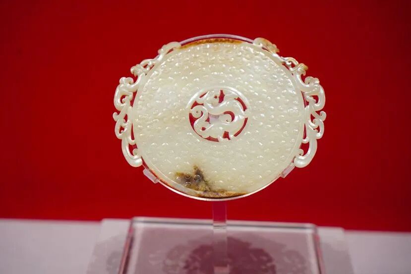 “双龙穿璧”,巨璧是人间与地下的界限。这两条龙,一青一赤代表一阴一阳,青龙象征魂、赤龙象征魄
