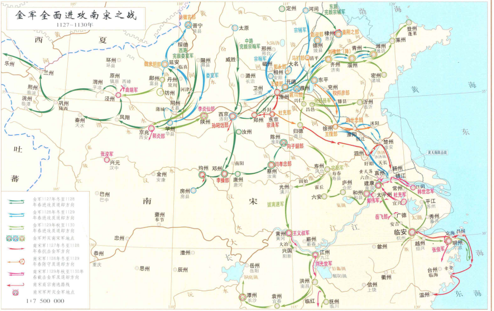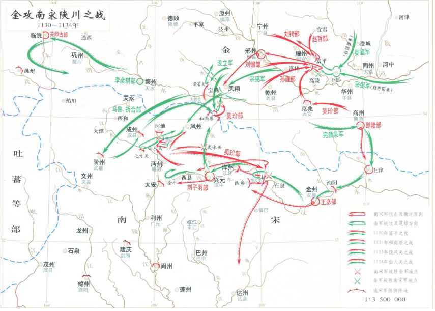 面对陕西之地旋得旋失的局面,金国朝廷就南下还是西进的战略方针展开了激烈的讨论,老谋深算的左副元帅宗翰认为:“前讨宋,故分西师合于东军,而陕西五路兵力雄劲,当并力攻取。”意思是说,金军之前讨伐南宋犯了分兵的错误,进攻陕西的西路军兵力不足,而南宋陕西地区兵雄将广,是南宋最有战斗力的一支部队,应该集中兵力经略陕西,同时也能避免西夏趁火打劫,坐收渔翁之利。金太宗采纳了他的意见,一场恶战即将爆发。