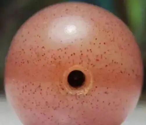 朱砂点常常被看作判决天珠真假的重要依据,当然这个不是绝对的,判断一颗天珠的新老还是要从多方面综合分析的。有些天珠,本来有朱砂点,如果珍藏过久,朱砂点会慢慢回到天珠内部。像有生命一样。有些老天珠,珍藏过久,极少佩戴,没有朱砂点。