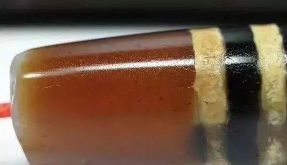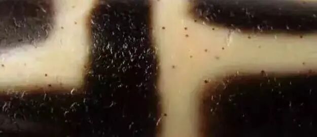看下图,至纯天珠纯黑色线条颜色厚重难以出现朱砂点。