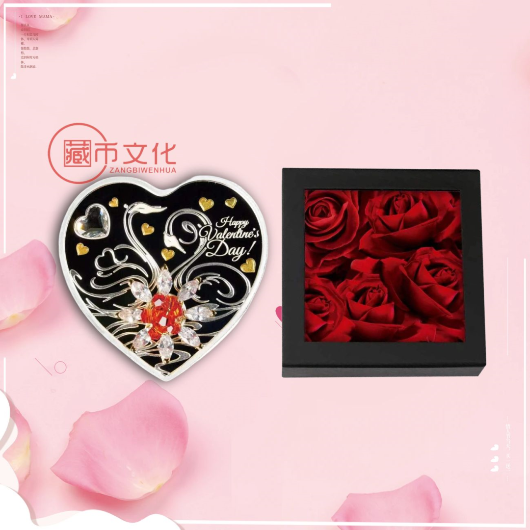 “愿得一人心,白首不分离”,是人们对爱情的永恒追求,银币整体心形设计,并镶嵌施华洛世奇心形水晶,光彩闪耀!莲花象征着纯洁高雅的爱情,3D莲花内部镶嵌红水晶,象征着我爱你的心赤诚而热烈。另外,莲花在爱海中绽放,背后是两只交颈亲昵的天鹅,在中西方文化中,不约而同地把白色的天鹅是视为纯洁、忠诚、高贵的象征,天鹅一生严守一夫一妻制,若一方死亡,另一方则不食不眠,一意殉情,因此人们常常以天鹅比喻忠贞不渝的爱情。