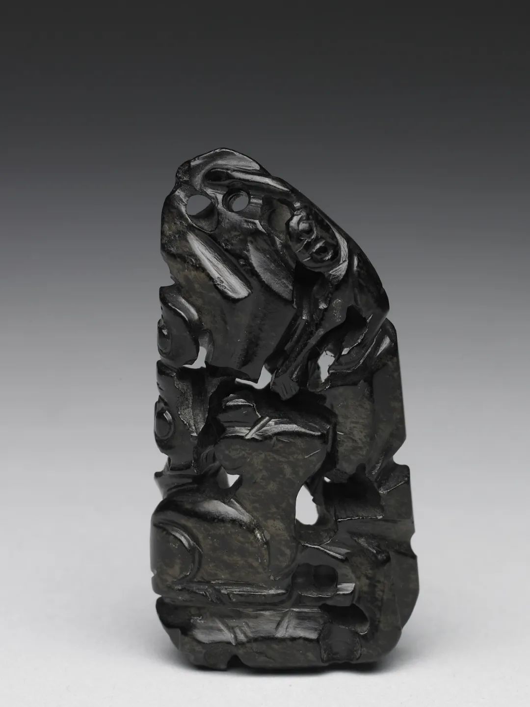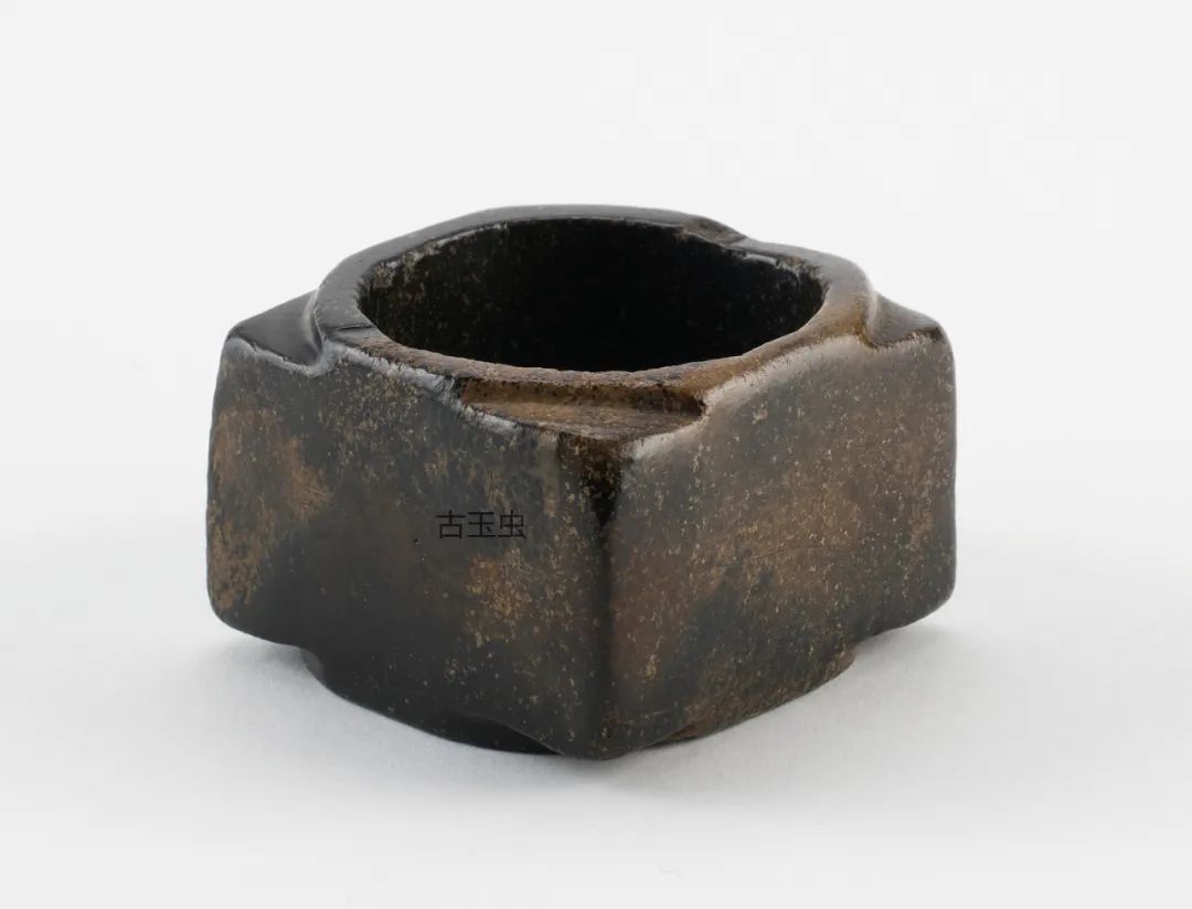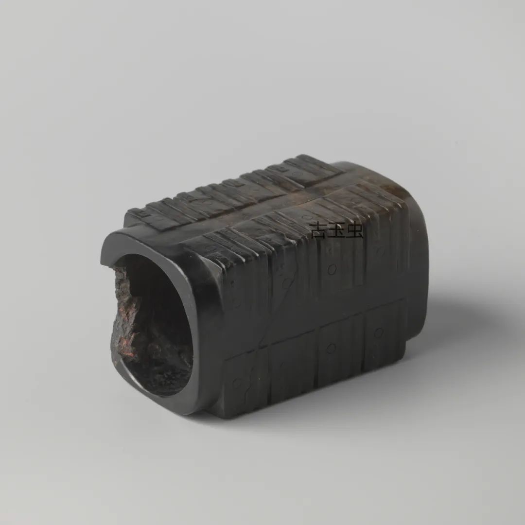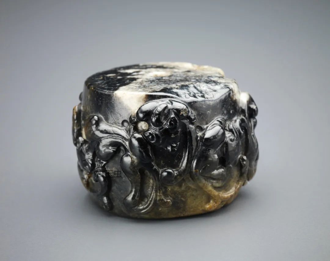 这种影响是通过沁门这一渠道得以实现的。如果水银沁乌黑铮亮且没有丝毫变化,往往是人工所为。明、清时期,有些玉工在仿制高古玉器时,常在青玉上涂一层黑漆,以充墨玉。像这样人为的“黑如纯漆”的“黑漆古”,是不可能有“发光之点多圆形”和“含绿圆点而透明”的效果。
