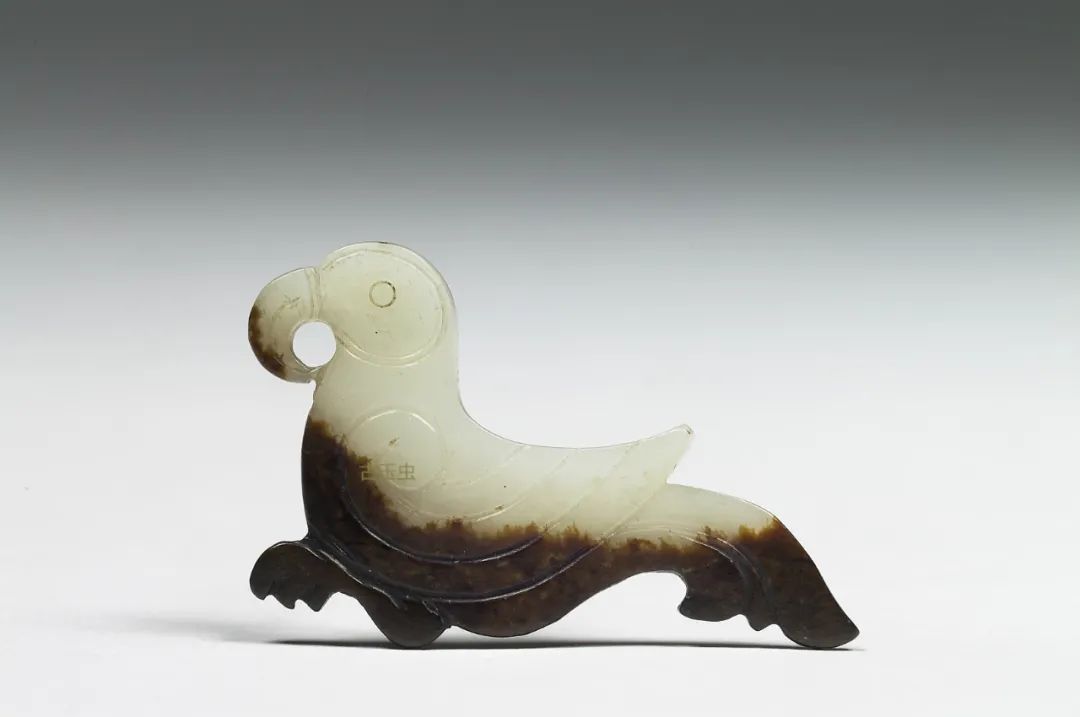 古人对真伪水银沁的鉴别也有一说,至今仍十分管用。“水银沁真者,黑白分界处明晰如刀截。”实物观察可见,水银沁呈现在白玉上确实黑白分明,如有一道分水岭;但是黑色中并非漆黑一片,而有黄点子跳出;白色处也非雪白,玉色泛青;玉的纹理中有分布较为稀疏的牛毛丝状黑沁。